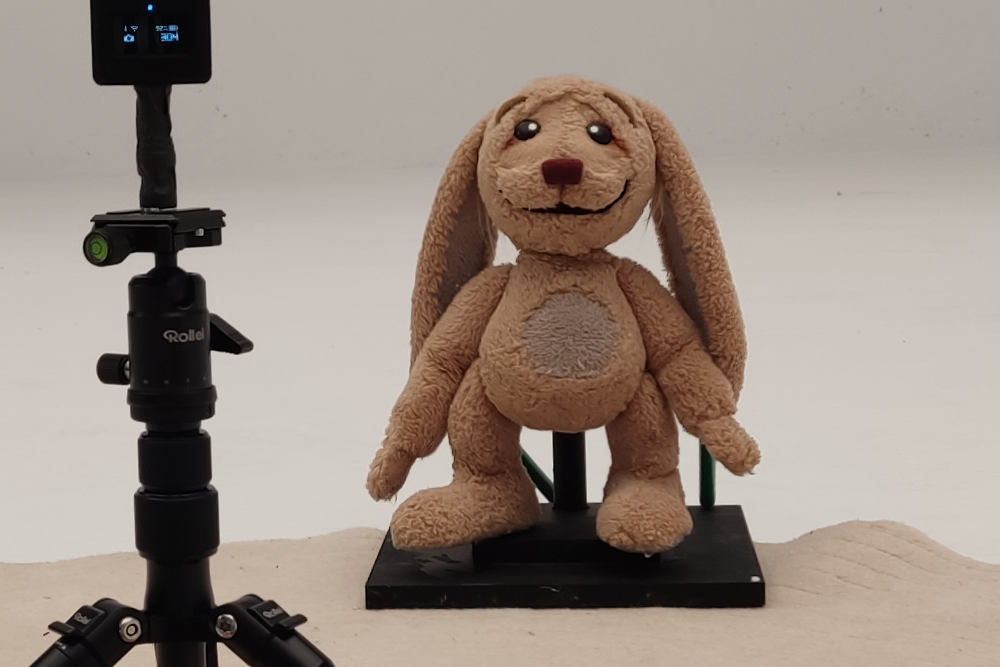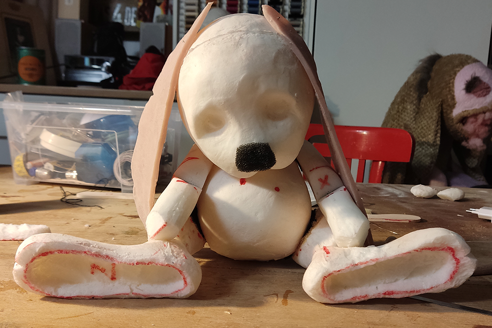 Se trató del diseño y fabricación de una marioneta con forma de conejito de peluche. A pesar de la aparente sencillez, estaba articulada y se manipuló entre tres actores.