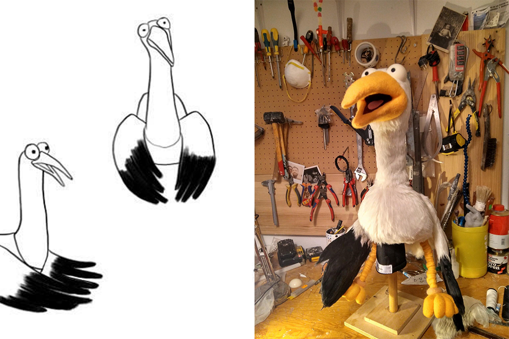 Nos encargaron el diseño y fabricación de una marioneta de una cigüeña, para promocionar una muñecas de Famosa.